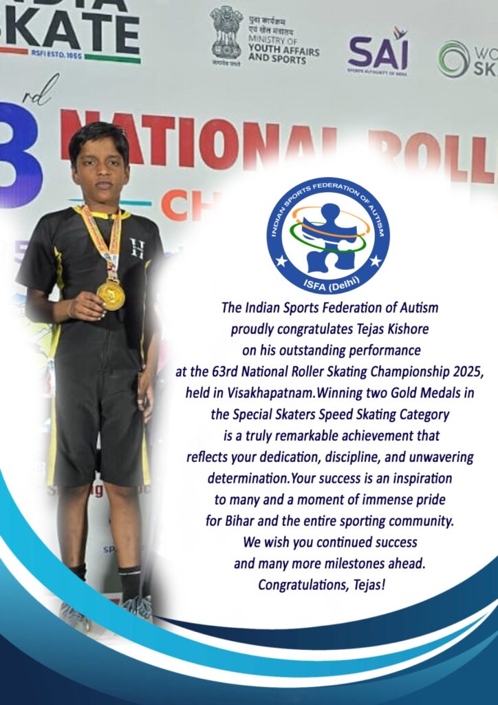 The Indian Sports Federation of Autism proudly congratulates Tejas Kishore for his outstanding performance at the 63rd National Roller Skating […]